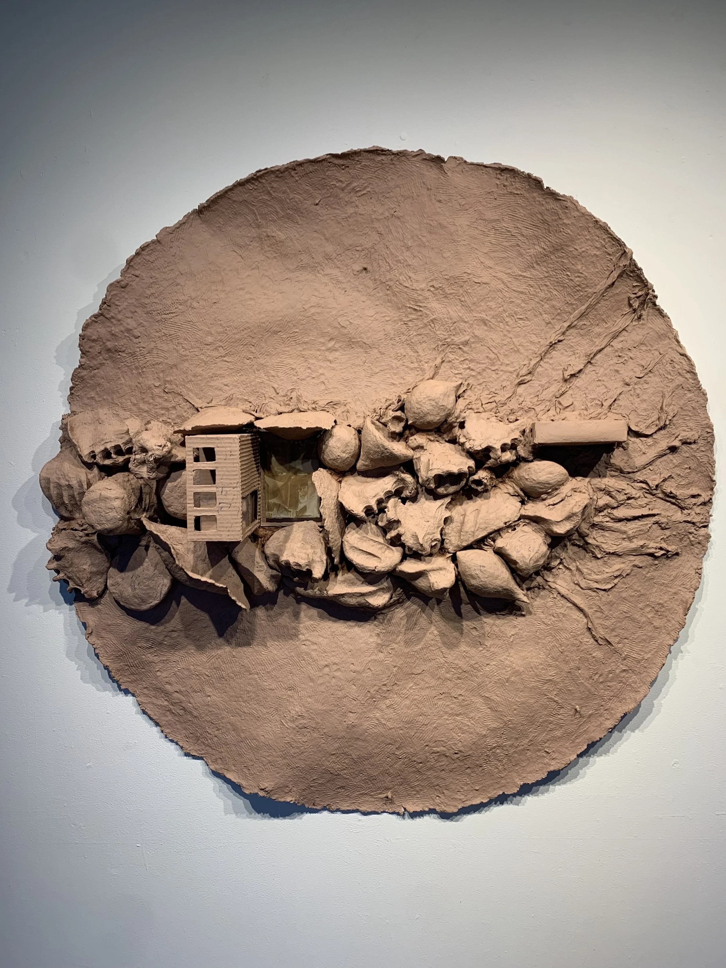 Shelter, Graphite on Paper Clay, 13 x 13 in., 2024