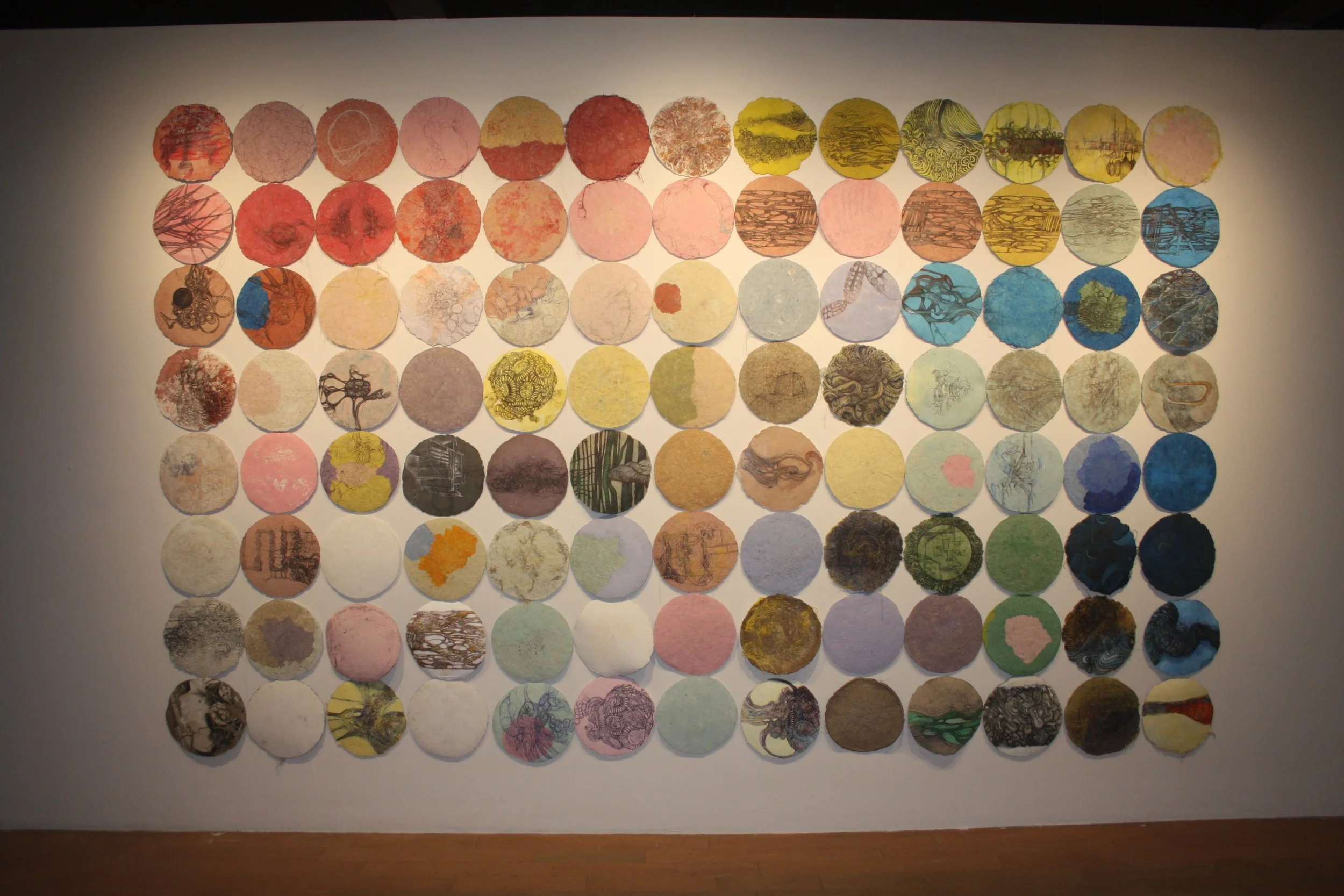 Rethreading the Surface: Mark-Making Ecologies is part of Holobiont Assemblage, an ongoing series of experimental drawings and small three-dimensional forms developed with paper clay. This body of work explores experimental approaches to using recycled paper, cotton fibers, and thread, transforming these materials into biomorphic structures that evoke the nanoscopic. Through these investigations, I seek to reflect the intricate complexity and interdependence of symbiotic relationships, employing material processes that resonate with the layered, dynamic systems inherent in microbiology.