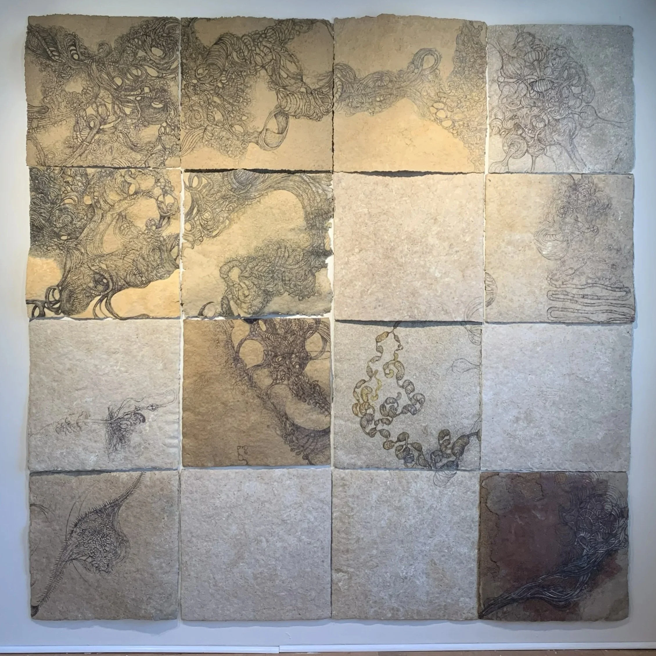 Holobiont Symbiosis, Graphite and Pen on Paper Clay Sheet, 24 x 24 in. 2023