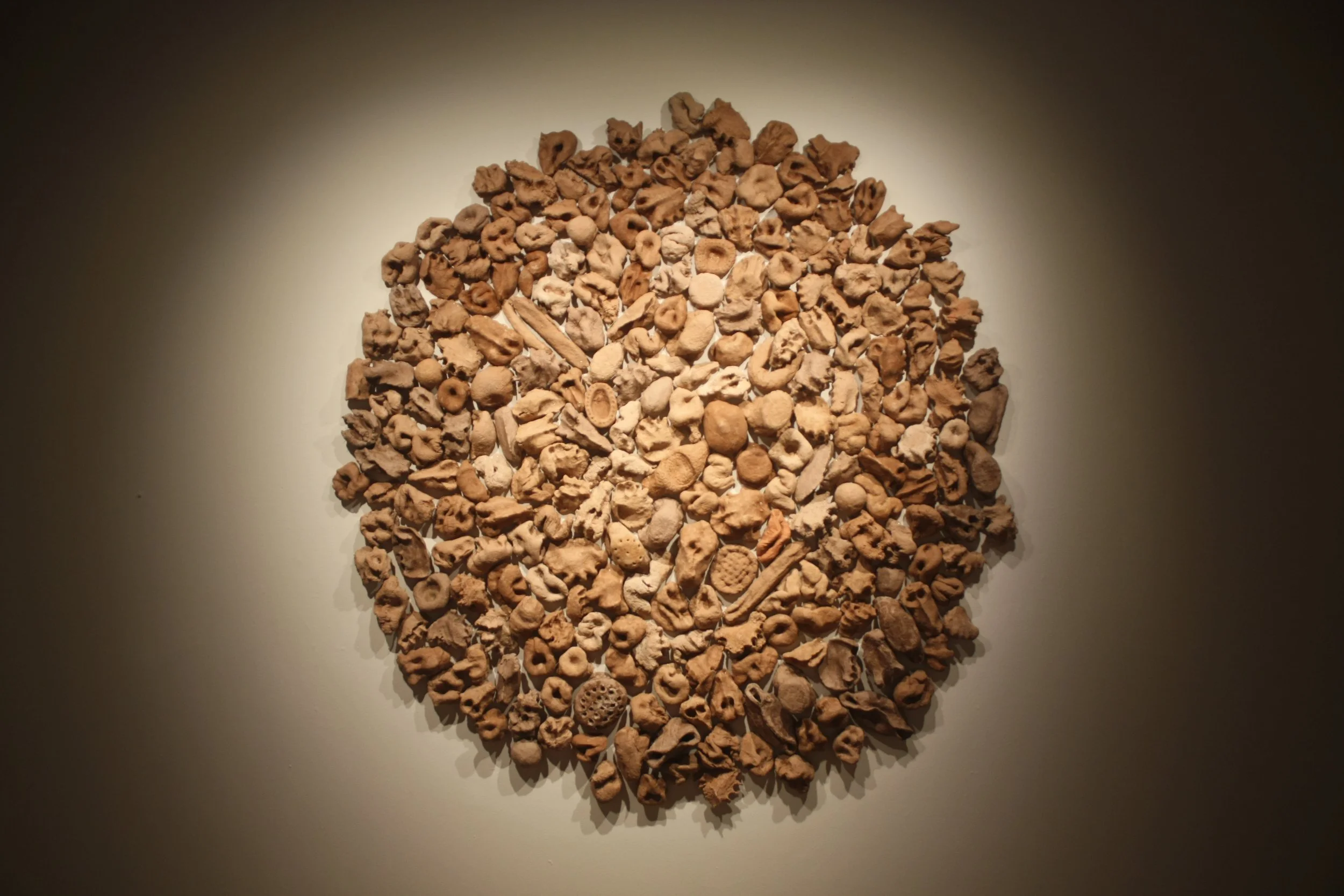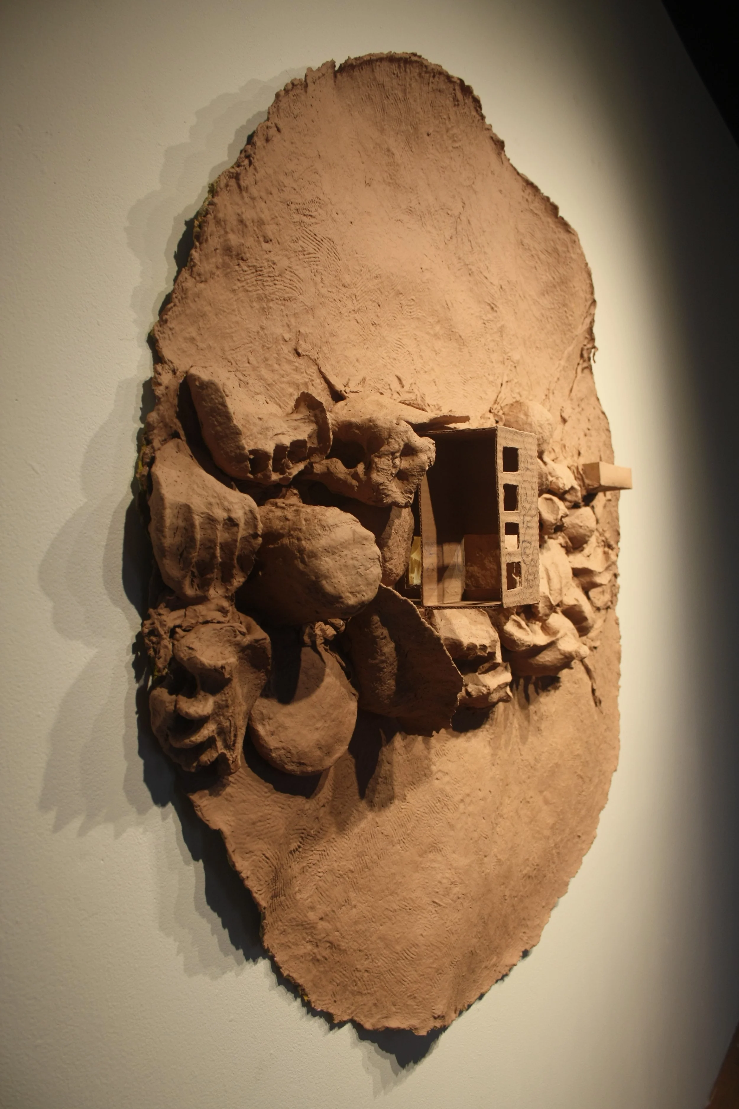 Mutualistic Remains, Paper Clay and Terra-Cotta slip, approximately 72 x 72 inches, 2025