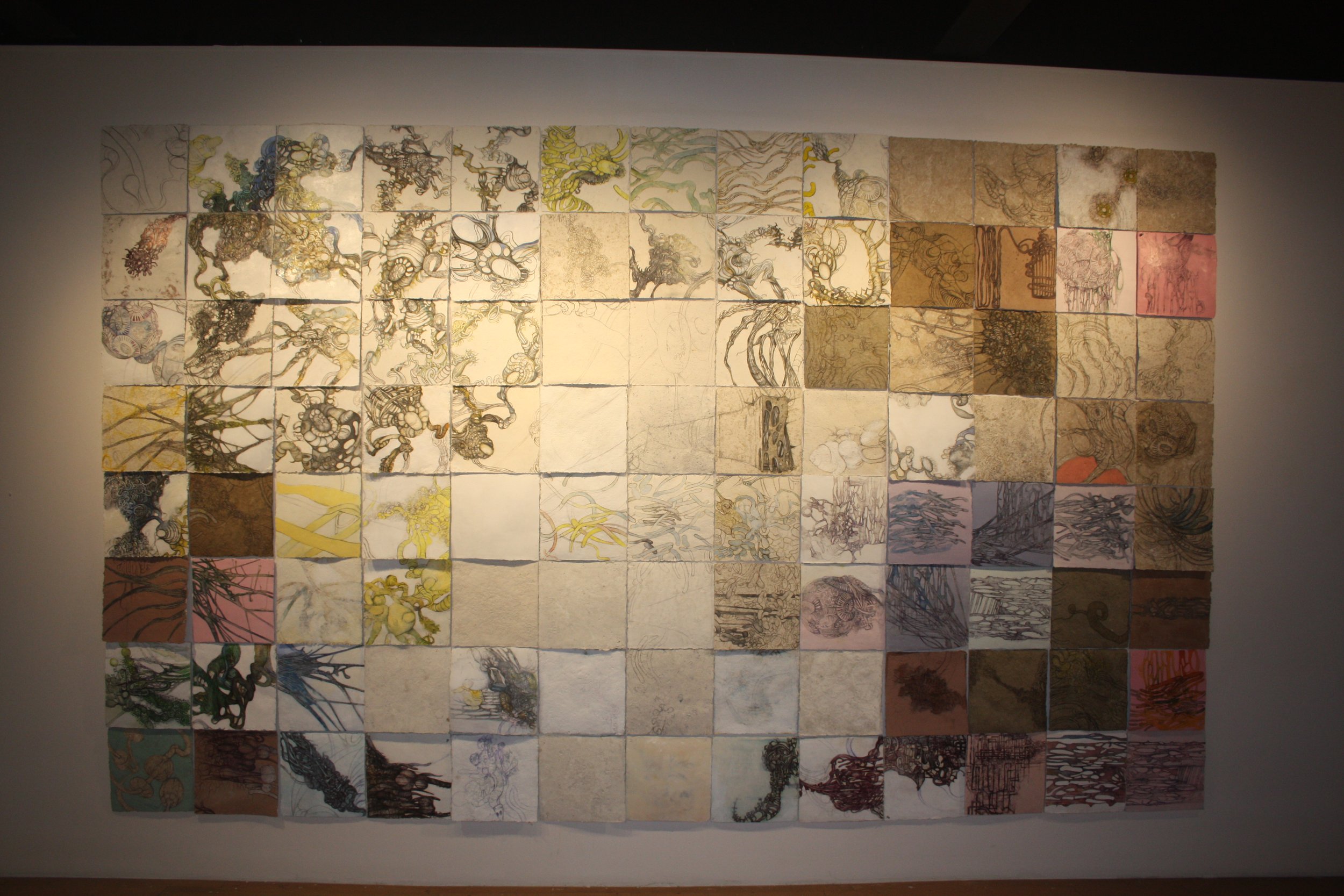 Holobiont Assemblage, Acrylic, Ink, Graphite, and pen on Paper Clay, 120 x 90 in., 2023