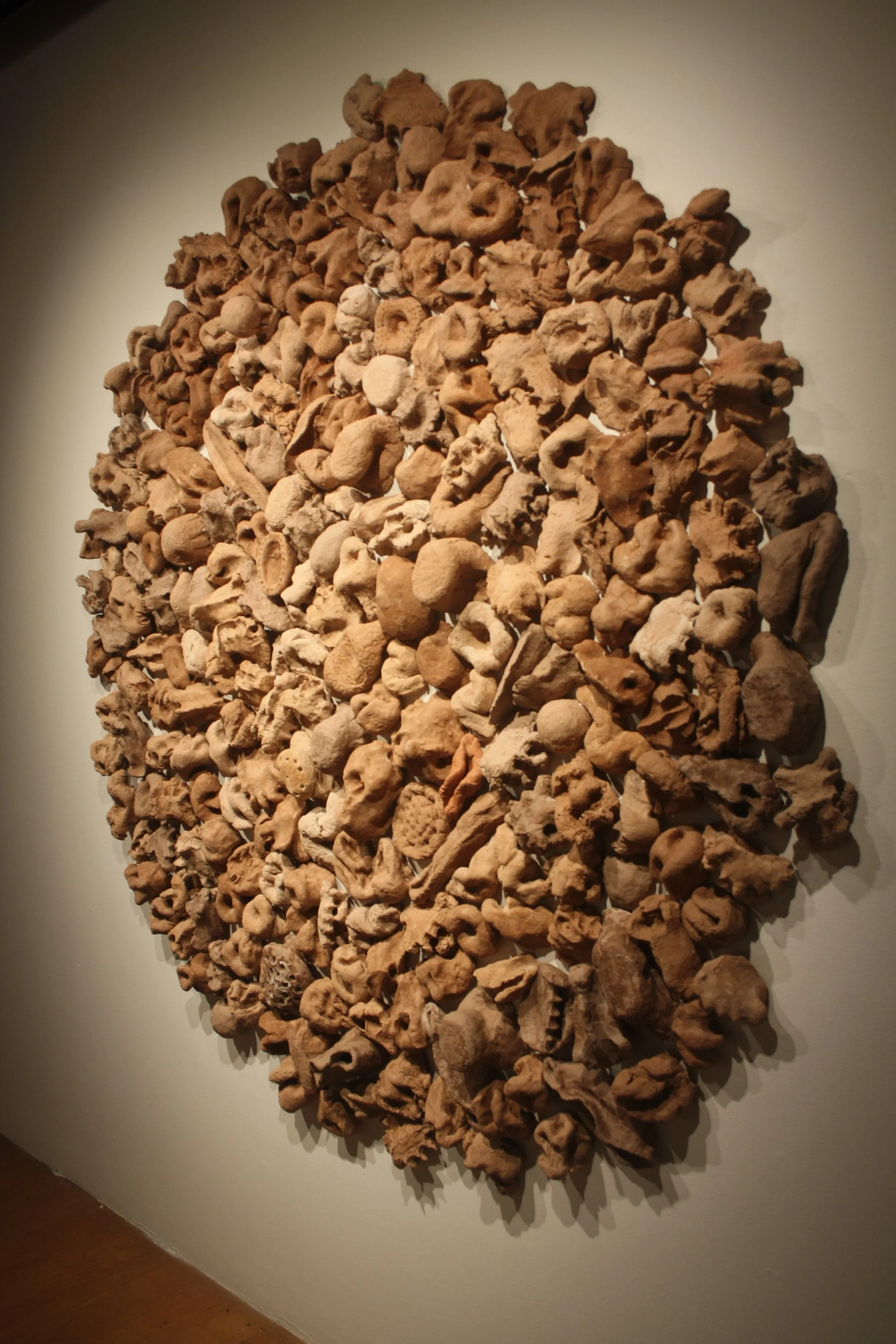 Mutualistic Remains (Detail), Paper Clay and Terra-Cotta slip, approximately 72 x 72 inches, 2025
